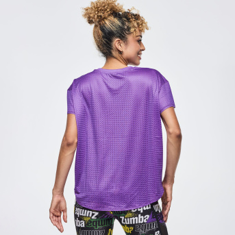 Apres Zumba High Low Crew Neck Top <Purple Power>-M