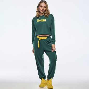 Apres Zumba Long Sleeve Oversized Crop Top <Teal Tango>-XS
