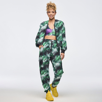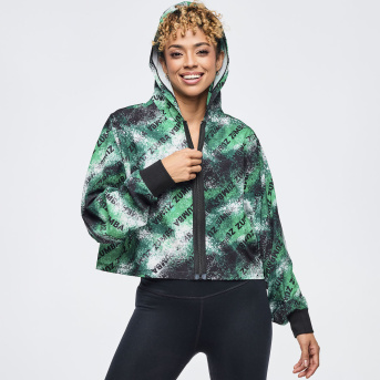 Apres Zumba Crop Woven Zip-Up Hoodie <Black/Green>-XL