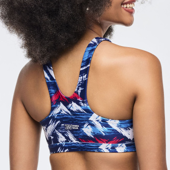 Apres Zumba Racerback Bra With Encased Elastic <Blue/White>-L