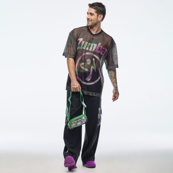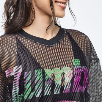 Oversized Long Mesh V Neck Top <Bold Black>-XS