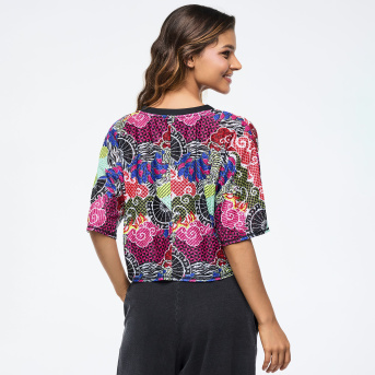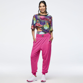 Eastern Flavor Boxy Dolman Crop Top <Pink/Yellow>-S