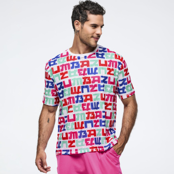 Eastern Flavor Boxy Mesh Top With Side Slits <White/Blue>-L