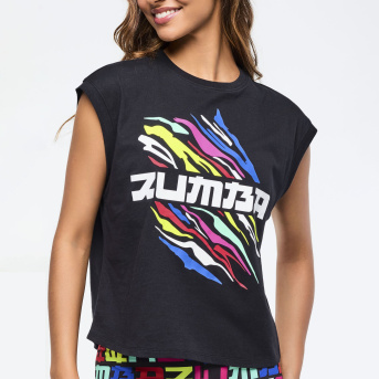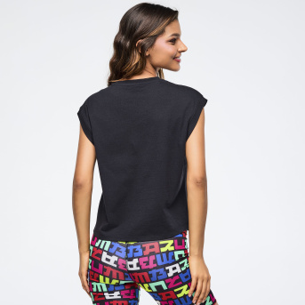 Eastern Flavor Extended Shoulder Loose Tank <Bold Black>-XL