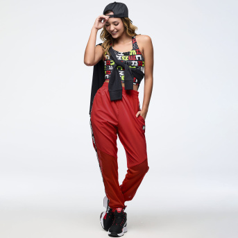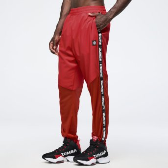 Eastern Flavor High Waisted Woven Track Pants With Mesh <Fuego Red>-S