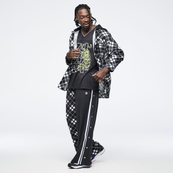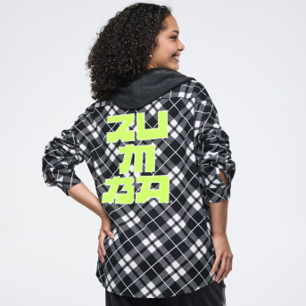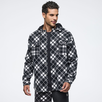 Eastern Flavor Flannel Shacket With Hood <Black/White>-M/L