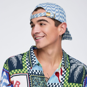 - つば部分にカーブに沿ったスケッチ風トライアングルデザイン