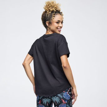 Latin Movement High Low Crew Neck Top <Bold Black>-XS
