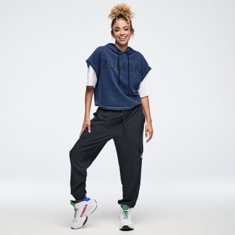 Latin Movement Short Sleeve Crop Pullover Hoodie <Denim>-L